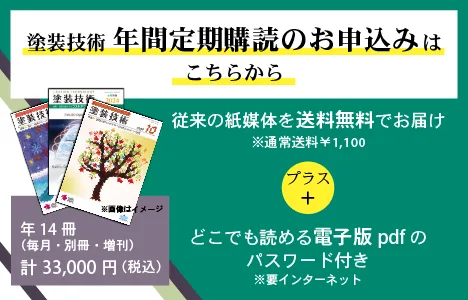 塗装・塗料などコーティング情報を発信する国内唯一の技術誌(月1回発行)です。塗料原材料・樹脂・顔料・添加剤、塗装機器・設備・システム、塗装周辺技術から、塗装工場の管理手法、自動化・省人化、環境技術、工場経営や人材育成まで、塗装全般に役立つ情報が満載です。